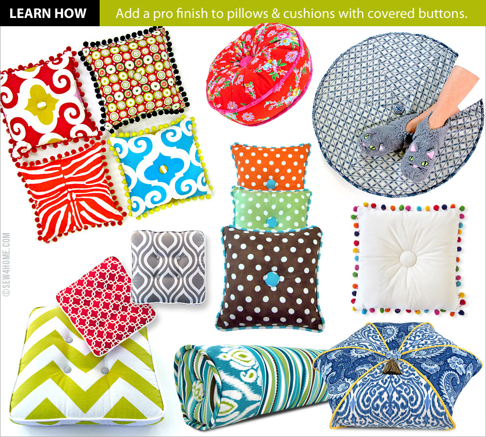 Covered buttons are often used on pillows with a tufted appearance. This means there’s a button on the front and a button on the back and the pillow is compressed between the two buttons, producing the tufted appearance.