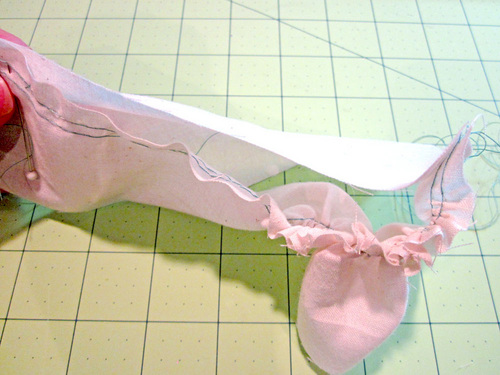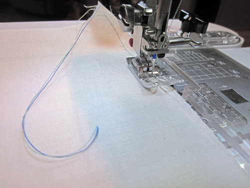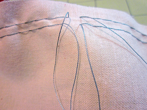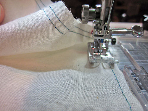 If you hold your finger behind the foot as you do your machine basting, the fabric will start to pucker and gather as you stitch.