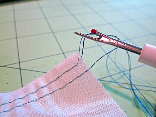 - Some sewing experts will tell you it doesn’t matter which thread you pull to gather the fabric: needle or bobbin. However, our experience tells us differently. Because of the way a straight stitch is formed, the top (needle) thread is held down by the bottom (bobbin) thread. The bobbin thread is always the one that removes more easily and is less likely to break!