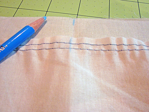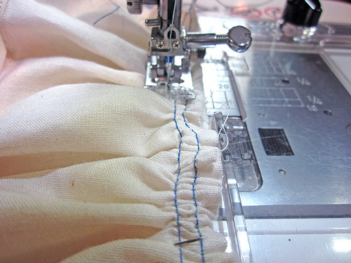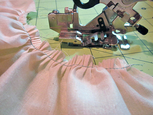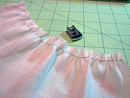 - With these seams sewn, it’s time to actually gather the fabric. Remember, your goal is to gather the fabric to the length you need in order to sew it to your project.