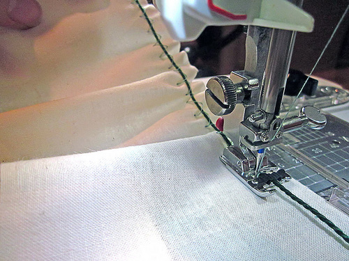 - Re-set your sewing machine back to regular sewing. Depending on the type of fabric and the amount (or thickness) of gathers, you may have to set your stitch length slightly longer than you would if the fabric was not gathered.