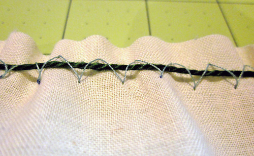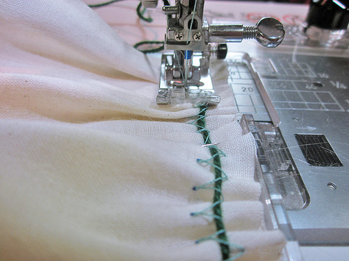 - Sew the gathers to your project, sewing just to the left of (just below) the zig zag.