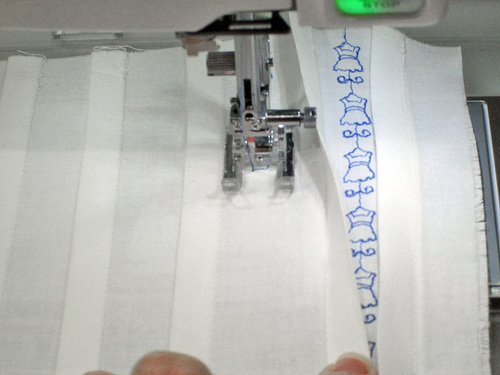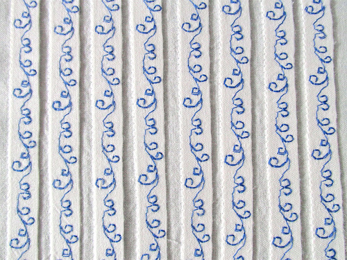 - Continue in this manner across the panel. You can lift up the tucks slightly if need be to allow the presser foot to pass more easily.