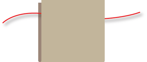 - With one hand, hold the wrapped cardboard flat against a tabletop. With the other hand, grab both ends of your tie strand and gently pull it down and out the open end of the cardboard. Once out, you can let go with your first hand and use both hands to make a knot around the floss bundle with the tie strand.