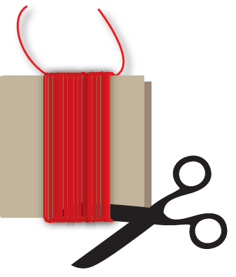 - Determine the finished length of your tassel and cut a piece of cardboard that is 5″ wide x twice your determined length. For example, if you want your tassel to be 4″ from top to bottom, cut a piece of cardboard that is 5″ wide x 8″ high.