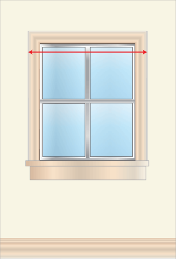 Get the raw measurements of your window. Start by measuring the width of the window. Place the end of your tape measure along the outside edge of the molding of the window (not along the glass) and measure to the opposite outside molding edge of the window.