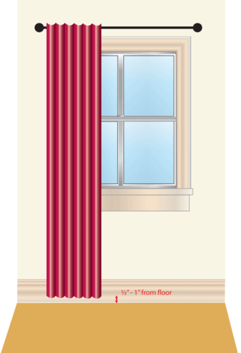 As you’re planning, determine if there are any obstructions that will get in the way of your desired length. For instance, if you have a baseboard heater below the window, your curtain should hang at least an inch above it.
