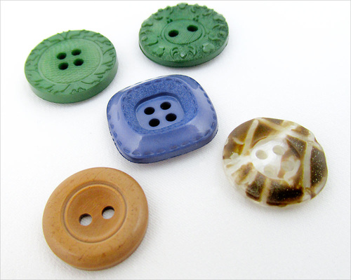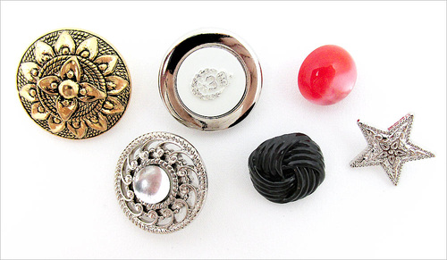 Shank style buttons are often more decorative than flat buttons because the entire top surface is available for embellishment. Although, as you can see in the flat button photo above, decorative buttons come in all styles.