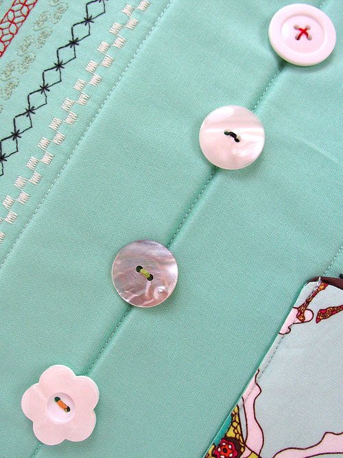 If you have lots and lots of buttons to sew in place, you may want to sew them on by machine. We have a handy tutorial on how to do just that.