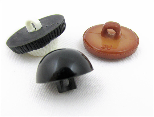 Shank buttons have a small “eyelet” piece that extends from the back of the button with a hole for attaching the button.