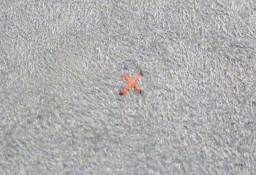 3. With the knot secured the front of the project, create your “X” as you did above, which marks the position of your button.