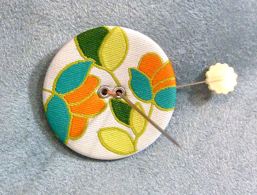 2. Because the button has a shank, you don’t need to worry about creating one with a pin. The button raises itself from the surface of the fabric, so there is a natural space between it and the buttonhole. You can sew on this button without using the pin behind the button to lift it from the fabric surface.