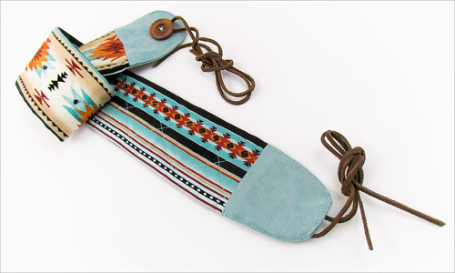 1. Sometimes, you want the back of the project to have no visible thread work. This was the case on our Wrap Front Belt shown below. This is done similarly to the hidden knot method above, but you are not ever passing all the way through to the back – you are only working through the top layer behind the button.