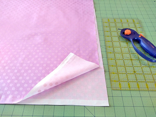 Once aligned and confirmed both above and below the fabric, slice with a rotary cutter.