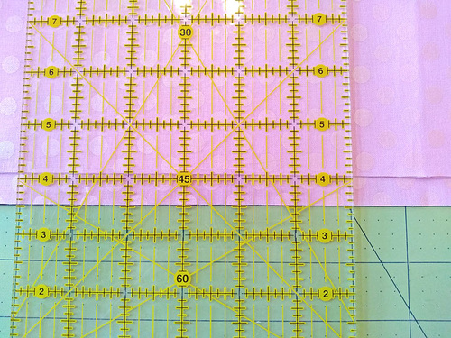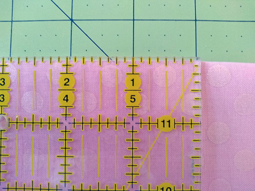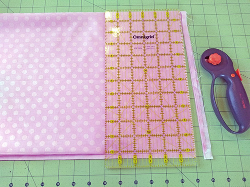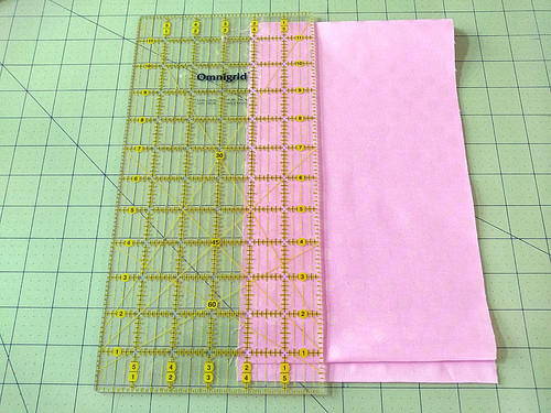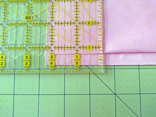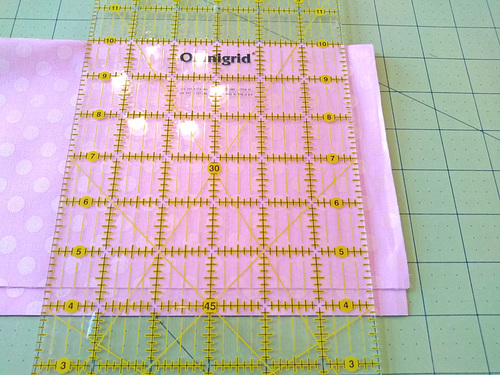 Align the cut edges (the 22” edges) along a horizontal gridline on the cutting mat.