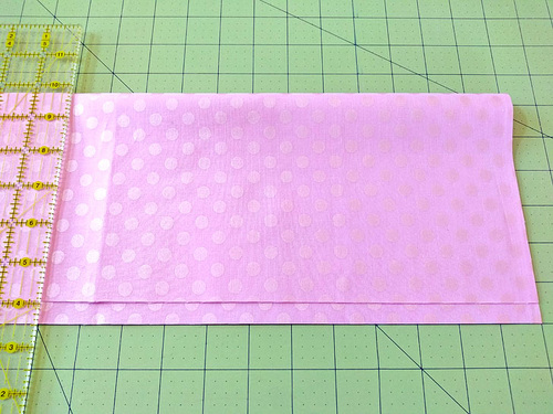 Fold the fabric in half so the selvedges match. Your folded piece is now 18” x 22”.