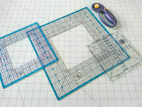 As you can see, squaring up can be done with a standard quilting ruler, but there are a variety of specialty rulers than can make the task even easier.