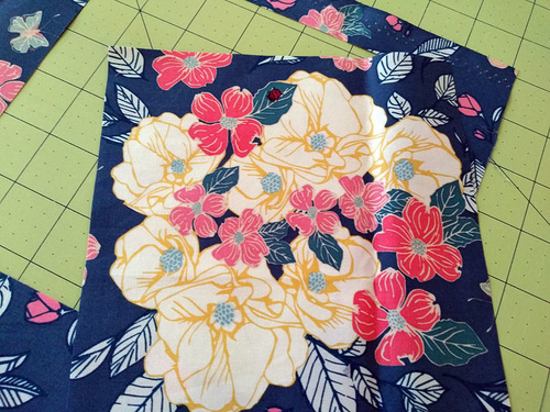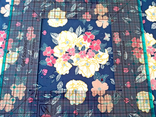 The result is the same with either tool: a perfectly fussy cut 6½” x 6½” accent square, with a perfectly centered bouquet of blooms.