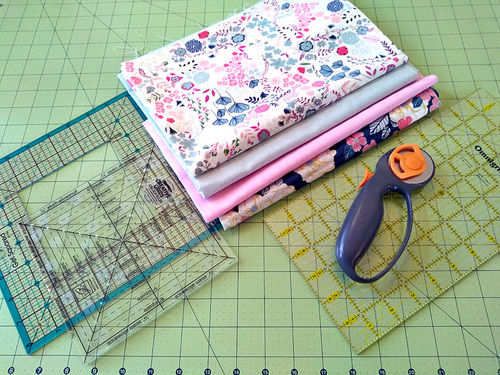 For this technique, arm yourself with a rotary cutter, a cutting mat with ½” and/or 1” gridlines, and a 3″to 6” x 12” quilter’s ruler, which is the kind with both horizontal and vertical markings down to at least ¼”, down to ⅛” is even better.