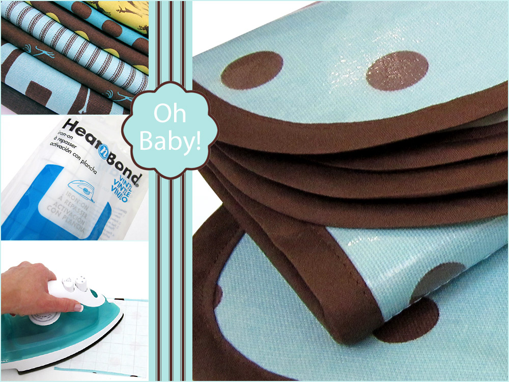 Today’s popular laminated cottons start out as basic woven 100% cottons, which are then coated with a Phthalate-free laminate. They’re ideal for any project where you want some waterproofing or the ability to wipe the finished item clean with a damp cloth. Think baby bibs, changing pads, raincoats, outdoor tablecloths, reusable shopping bags, and more. Many of your favorite fabric designers are adding laminate choices to their collections, giving you dozens and dozens of very pretty options to choose from. But sometimes, there’s a specific print you can’t find as a laminate; such as when you’re using a very specific set of fabrics and want everything to match exactly. There’s an easy way to make your own laminated fabric with iron-on vinyl. The most widely used product of this type, and the one we’re using for this tutorial, is Heat ‘n’ Bond by Therm O Web.