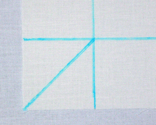 Draw a diagonal line. This line represents the intersection point of your corner(s). Our sample shows how you can use the same diagonal line to stitch perfectly stacked corners in both directions.