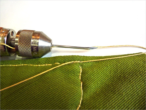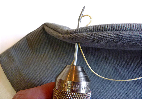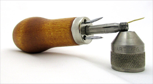 Take the time to unthread and pack the needles back into the ferrule (the metal band at the top of the handle), then screw on the chuck lock to cover the needle points. This way, there’s no worry about getting poked next time you reach for your The Speedy Stitcher.