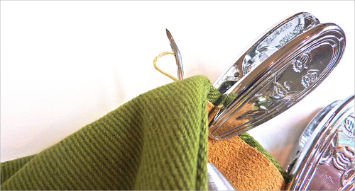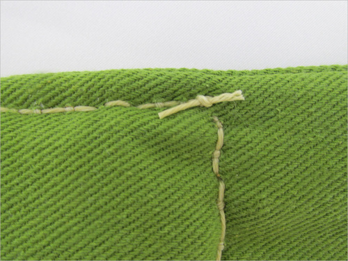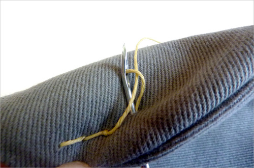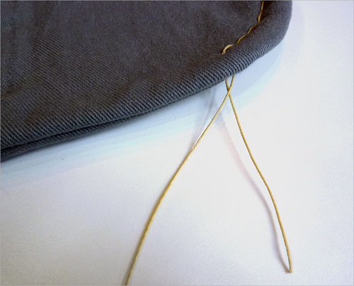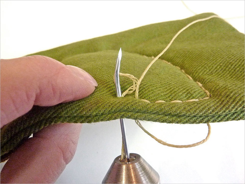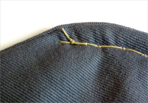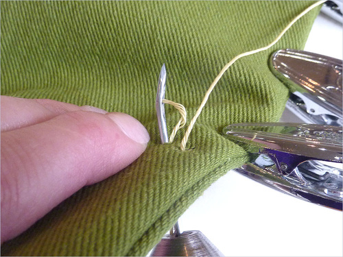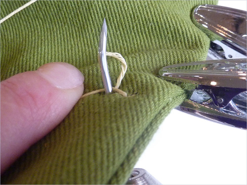 - As noted above, we pulled through enough thread to go around the patch plus an additional 3″ or so. The thread is inexpensive; it’s much faster to work with more than you need than skimp and end up with not enough.