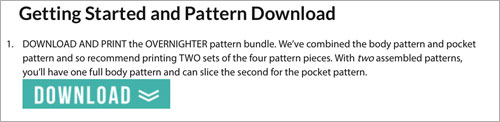 The majority of our patterns are bundled into a single PDF to make the download faster and easier. Some of older projects may include individual links to pattern pieces. The newest projects feature the blue DOWNLOAD icon (shown above) that makes it even simpler to see where/how to click to get the pattern(s).