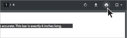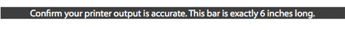 Our most recent patterns have a solid black bar. As above with the arrow, this bar will be 6″ – 8″ in length and the pattern will indicate the length. For example: “Confirm your printer output is accurate. This bar is exactly 6 inches long.” Use a ruler to measure the bar on your printout. Make sure you measure from end to end.