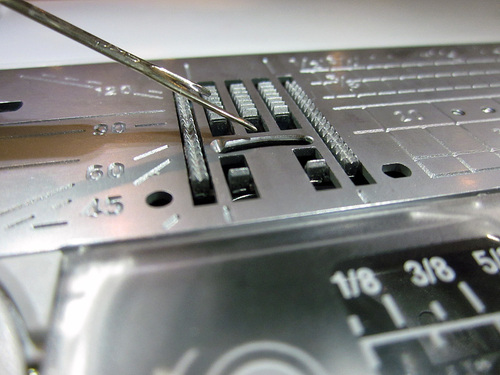 - Quilting guide bars – there are two; one is to use with the Even Feed foot and the other attaches to the back of the foot holder for use with other snap-on feet. These are great for keeping lines of stitching evenly spaced, such as for quilting or decorative stitching.