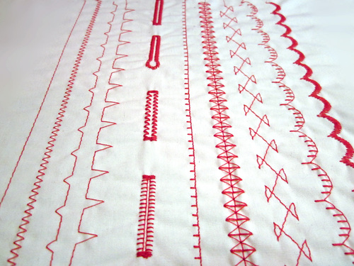 Mode 1 – Utility and Decorative stitches: Here you will find the most common stitches; straight, zigzag, knit stitches, buttonholes, quilting and heirloom (or smocking) stitches, and satin stitches.