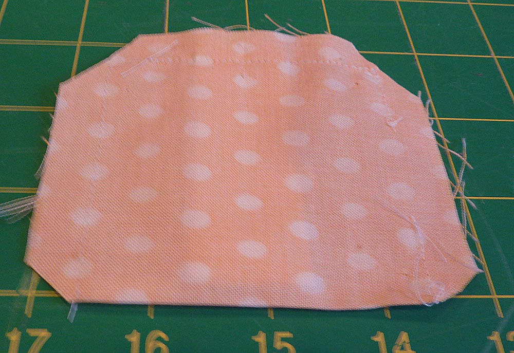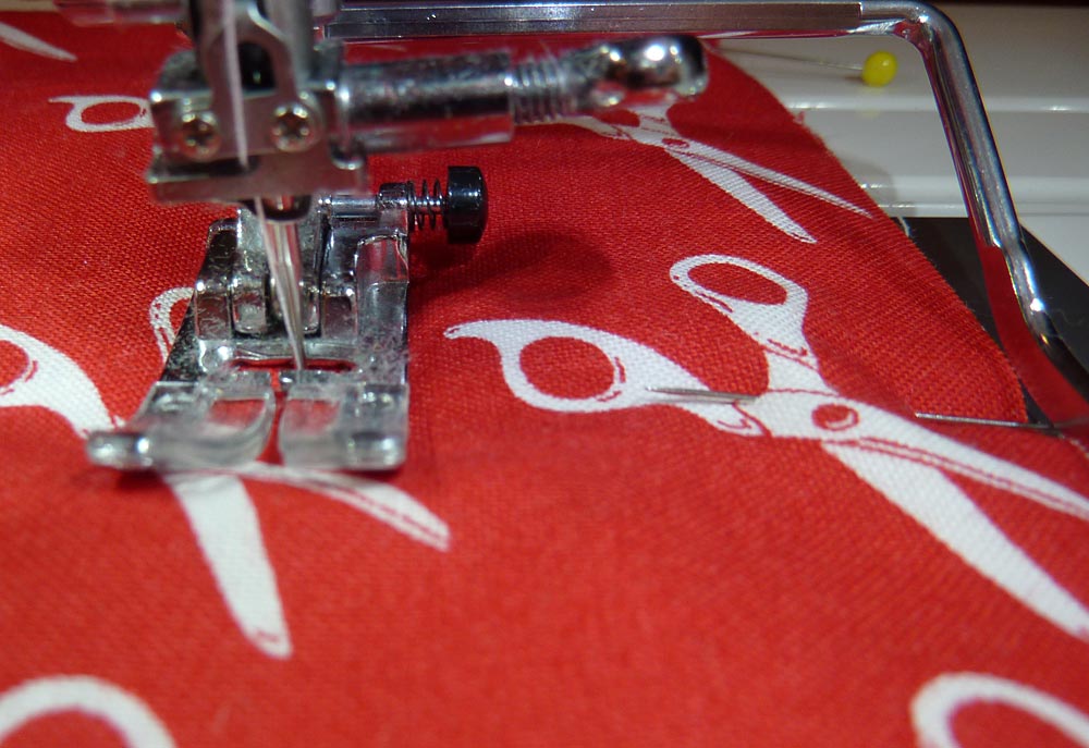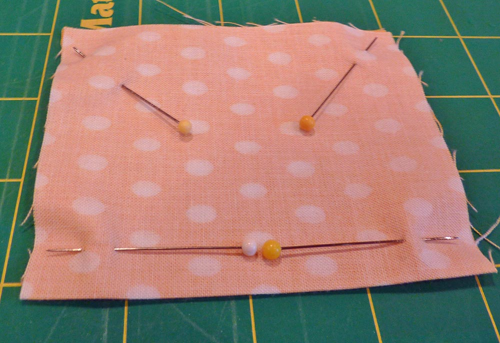 - Turn the thread catcher inside out again (right sides together), and pin across the remaining bottom edge – cut out to cut out.