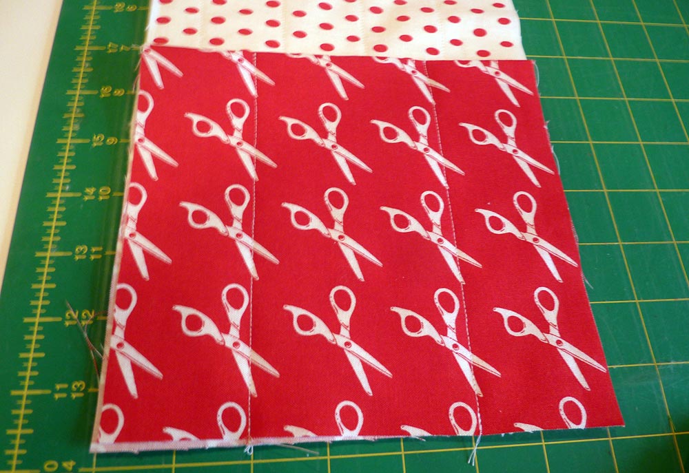 - Stitch across the bottom, using a ½” seam allowance. Press the seam allowance open.