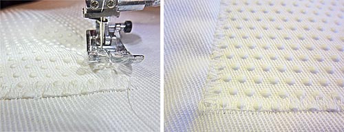 NOTE: If you have trouble with your presser foot moving across the gripper fabric, try using a Teflon® type foot, such as the Janome Ultra Glide foot or insert a piece of wax paper between the fabric and the foot.