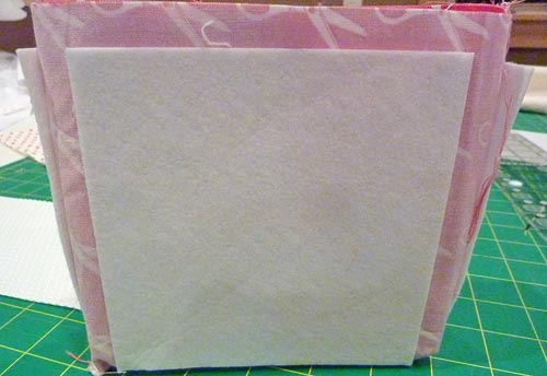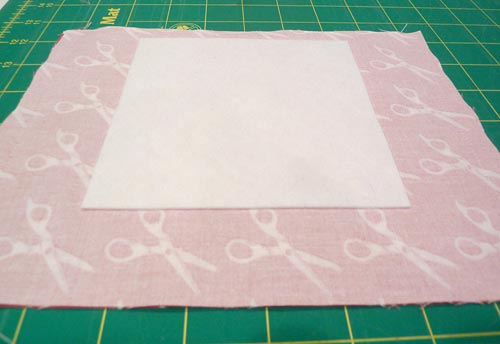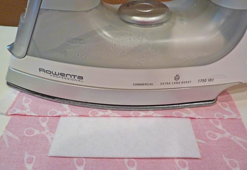 - Following manufacturer’s instructions, fuse in place. For best results, use a pressing cloth or simply on of the other fabric rectangles, which is what we did. This is important because this heavy stabilizer requires extra heat and pressure to fully adhere.