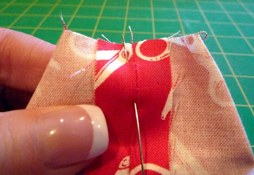 - Using a ½” seam allowance, stitch across each corner. Turn right side out and push out your pretty boxed corners.