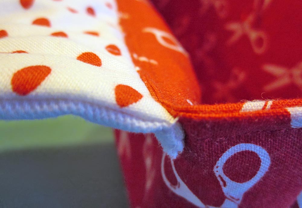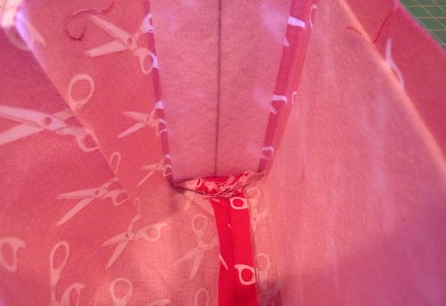 - Press well, folding in the raw edges of the top opening so they are flush with the sewn seam.