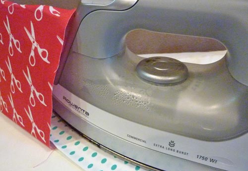 - Using the same method as before, fuse the stabilizer in place, remembering to use a pressing cloth or another piece of fabric against the iron’s surface. It’s a little tricky, but you can maneuver your iron to get in there – we promise.