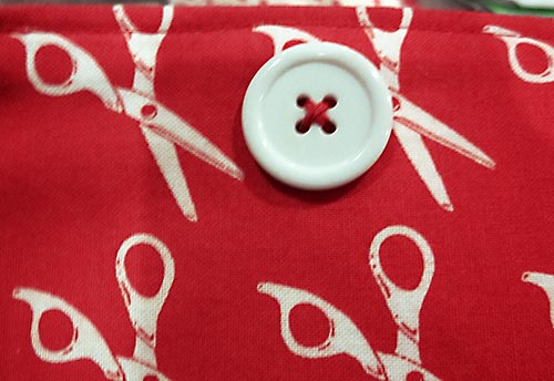 - Hand sew the button to the top center front of the thread catcher.