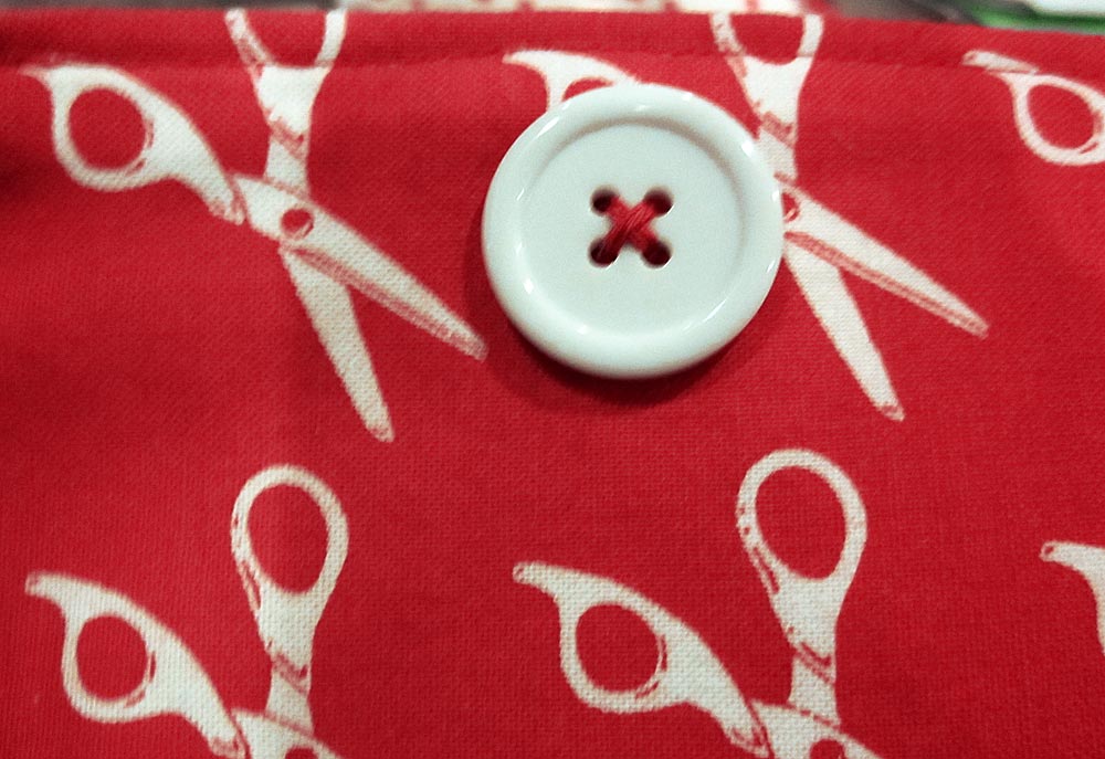 - Button in place on the thread catcher pouch.