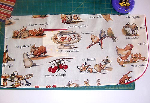 • ¾ yard of 44-45″ wide print fabric: we used Alphabeto Italiano Collezione by Michael Miller Fabrics in Cream Parole Italiano