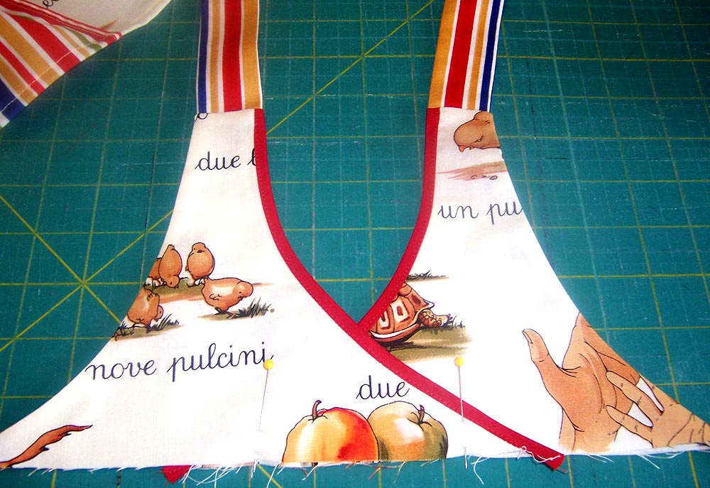 And, there are no gathers in the overlapped apron top.