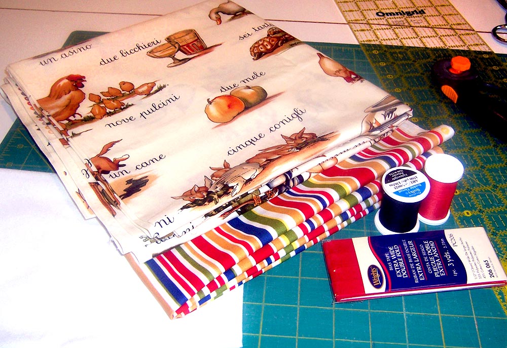 All the projects in our Italanio Kitchen series use a wonderful new fabric collection from our friends at Michael Miller Fabrics: Alfabeto Italiano Collezione. You’ll find it online and in stores now.