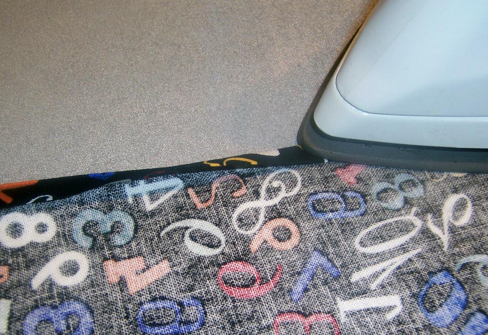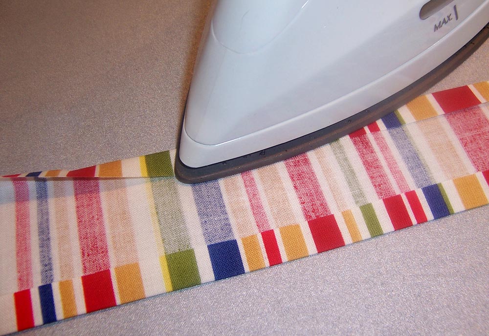 - On each of the four 3″ x 21″ contrasting strips, press under ½” along both 21″ sides.