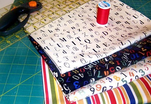 - ¾ yard of 44- 45″ wide fabric: we used Alfabeto Italiano Collezione from Michael Miller Fabrics in Cream Numeri Piccolo