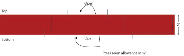 8. Stitch together, using a ¼” seam allowance. Press the seam toward the bias binding.