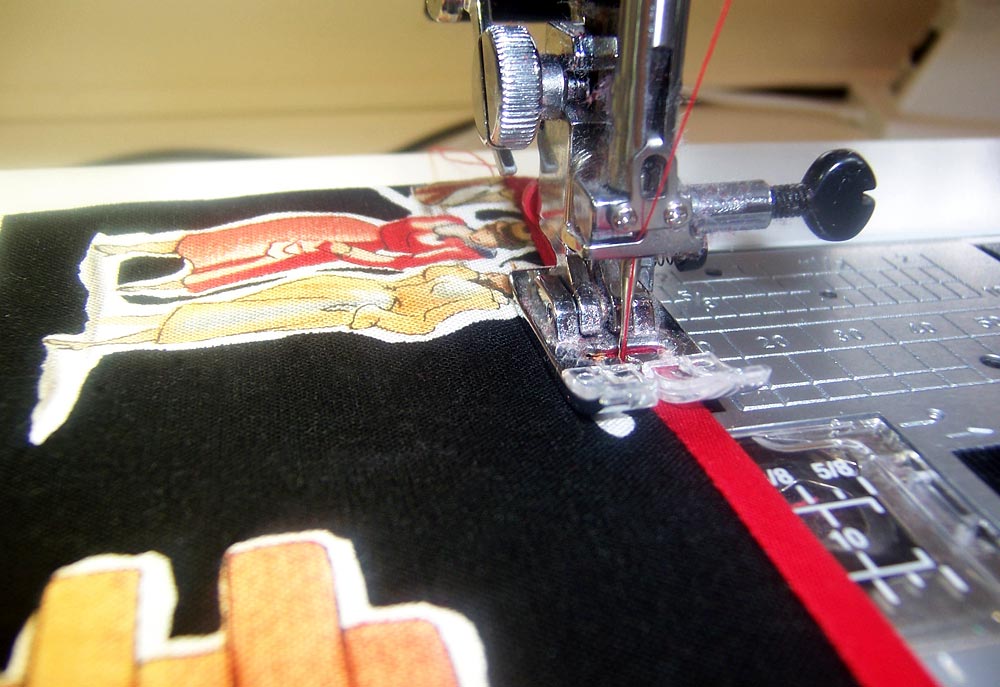 14. Edgestitch the bias binding to secure the layers.