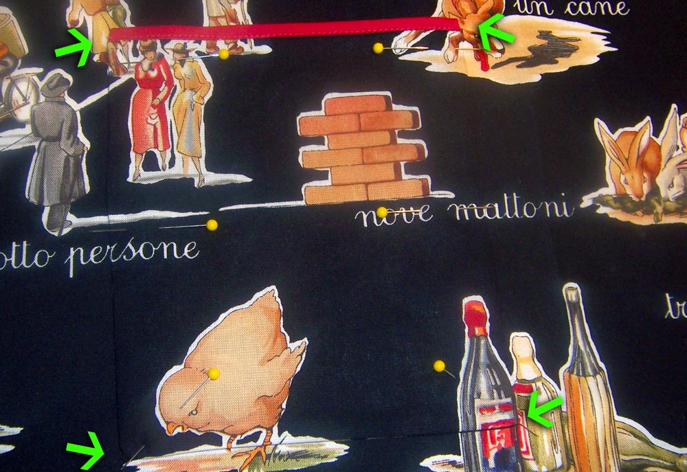 4. From the main print fabric (Black Parole Italiano in our sample), and using the downloaded pattern, cut: