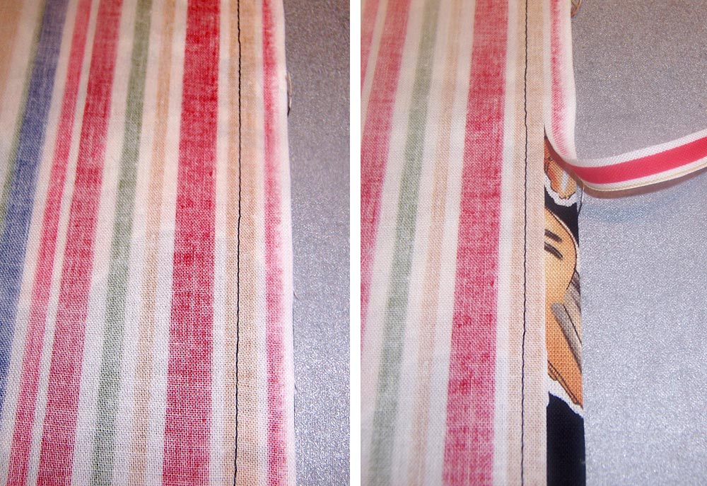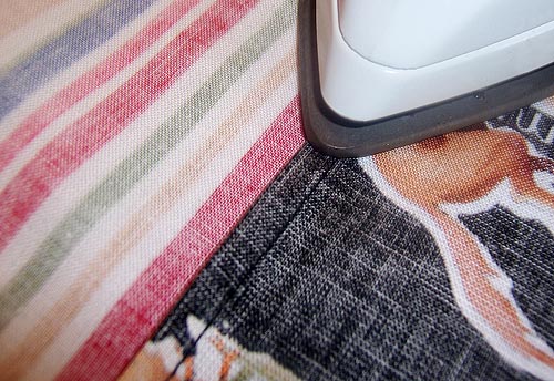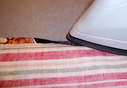 3. Turn this ‘wrapped’ seam toward the Under Skirt Panel (the stripe in our sample) , hiding the raw edge. Press.