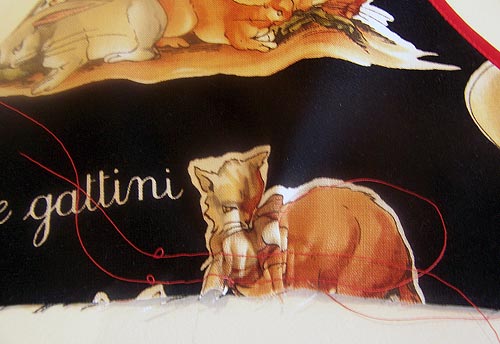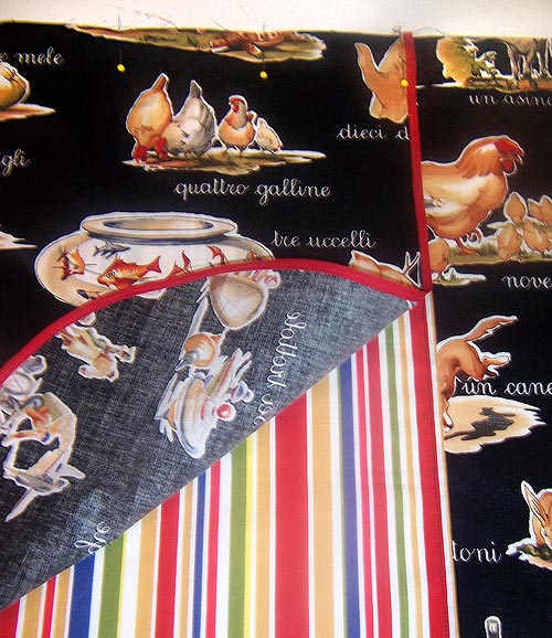 • 1-5/8 yards of 44-45″ wide print fabric: we used Alphabeto Italiano Collezione by Michael Miller Fabrics in Black Parole Italiano